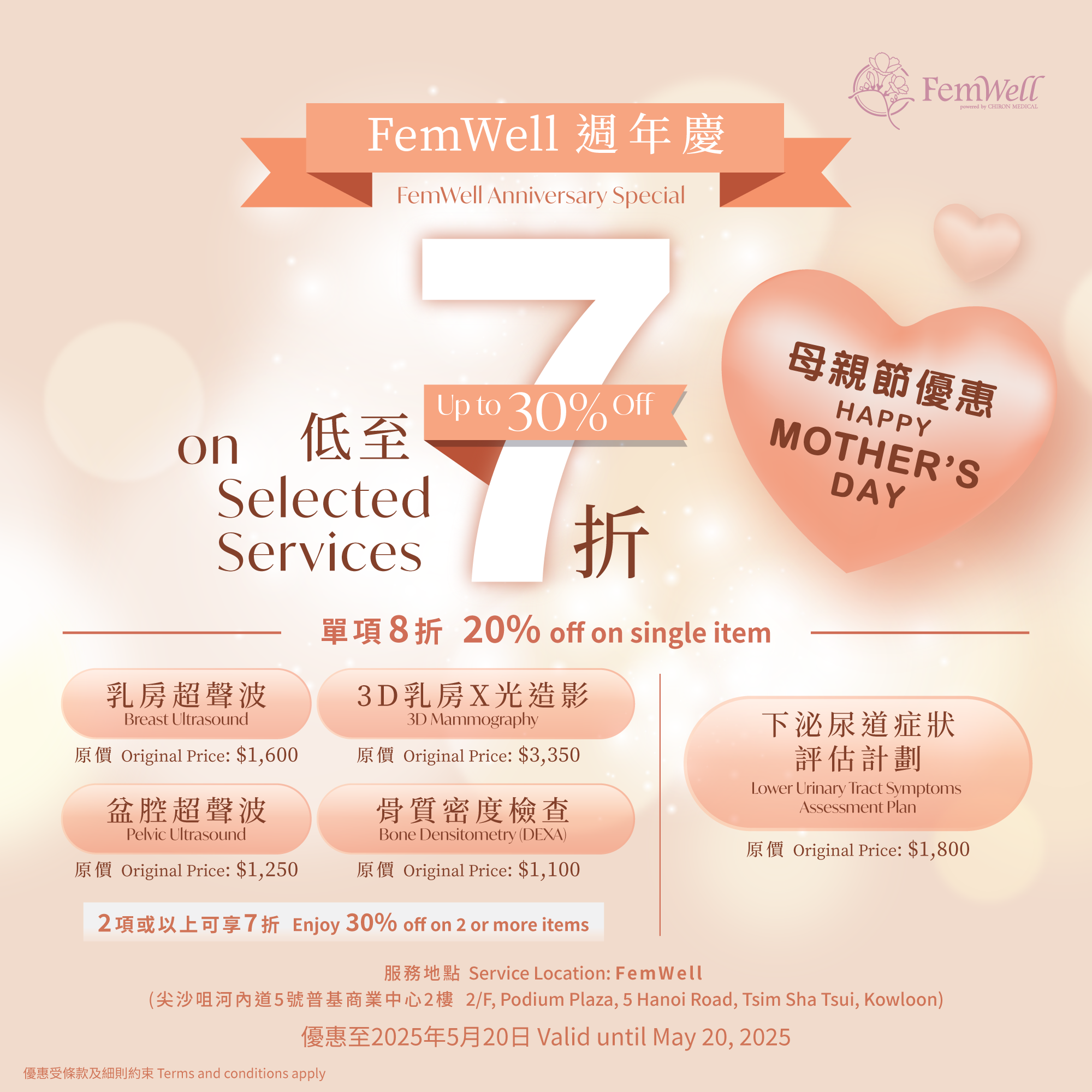 2025-04-01Chiron Medical and its subsidiary Women’s health brand, FemWell , are dedicated to the mission of caring for women and providing comprehensive medical support. We firmly believe that health is a fundamental right for every woman. Breast cancer is the most common cancer among women in Hong Kong, and early detection through imaging can lead to timely treatment before tumors develop. By prioritizing our health, we can transform the future of women's health. Therefore, we are launching the "1:1 Breast Health Empowerment Charity Campaign", inviting everyone to pay attention to their health and that of others.