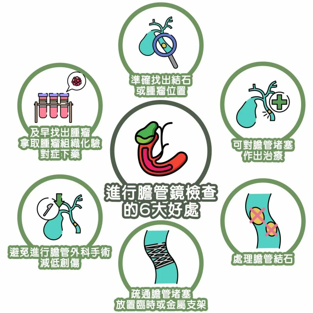 A:膽管鏡檢查是一項內視鏡檢查,與大腸鏡及胃鏡檢查相類似,會以導管進入器官作診斷檢查,有需要時會在檢查期間作相關治療如切除膽管結石管胰管結石、膽汁引流等。