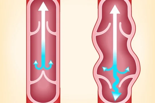 靜脈曲張是因為靜脈功能出現毛病,血管中有如活塞的瓣膜,功能在於阻止血液倒流,讓血液「走單程路」只流向心臟,但若腿部靜脈瓣膜的功能減弱或失調,血液便會隨地心吸力向下回流,增加對靜脈的壓力,日積月累,腿部靜脈便會慢慢腫脹、彎曲、甚至變形,這就是靜脈血管凸起、出現蚯蚓般青筋的原因。