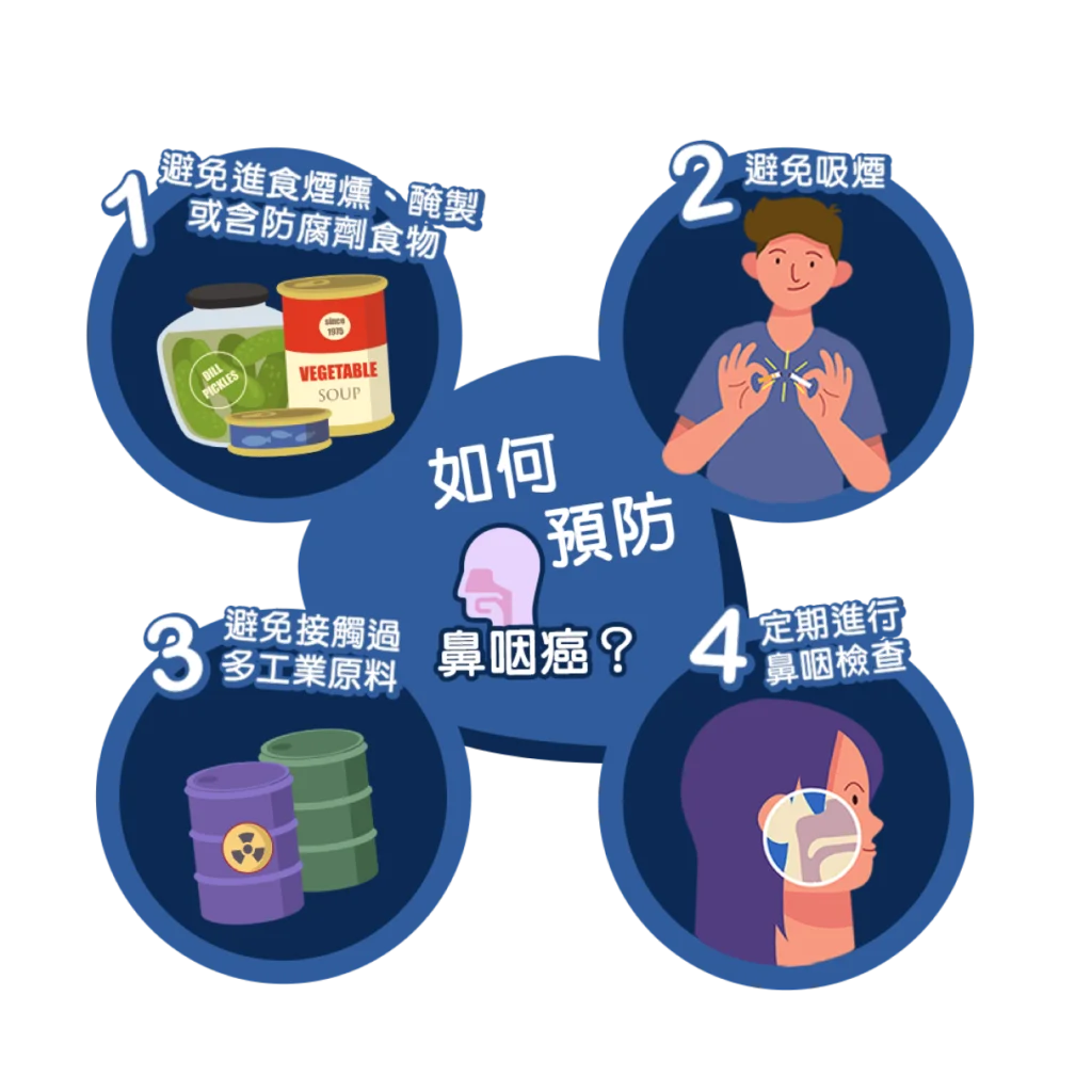 因應鼻咽癌的成因,患者可以遵從以下方法以減低患上鼻咽癌的風險: