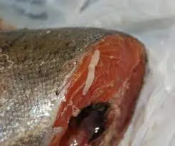 李小姐在網上展示了昨晚吃過的油甘魚,魚身疑似有寄生蟲。(圖:太古社區關注組專線 FB)